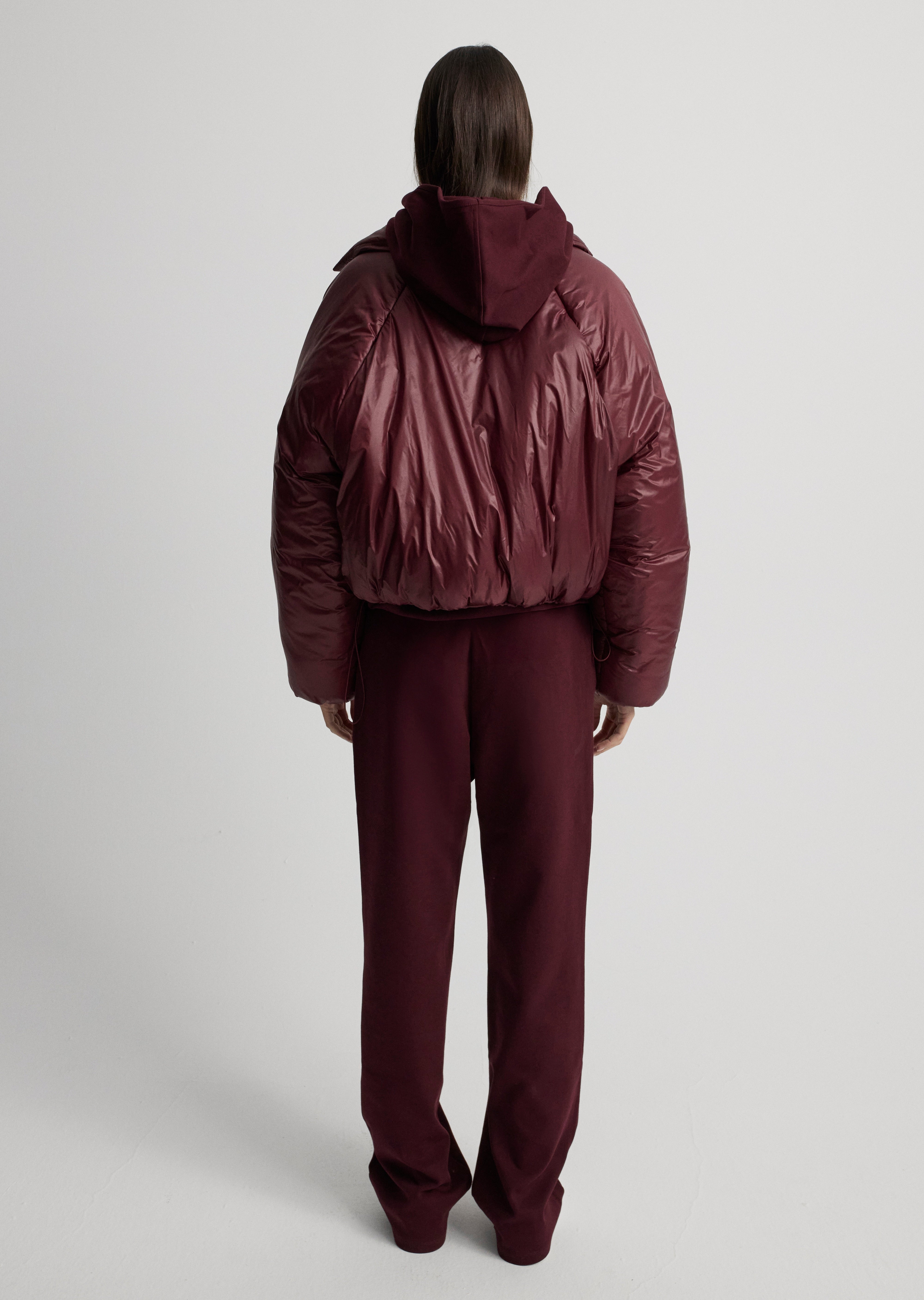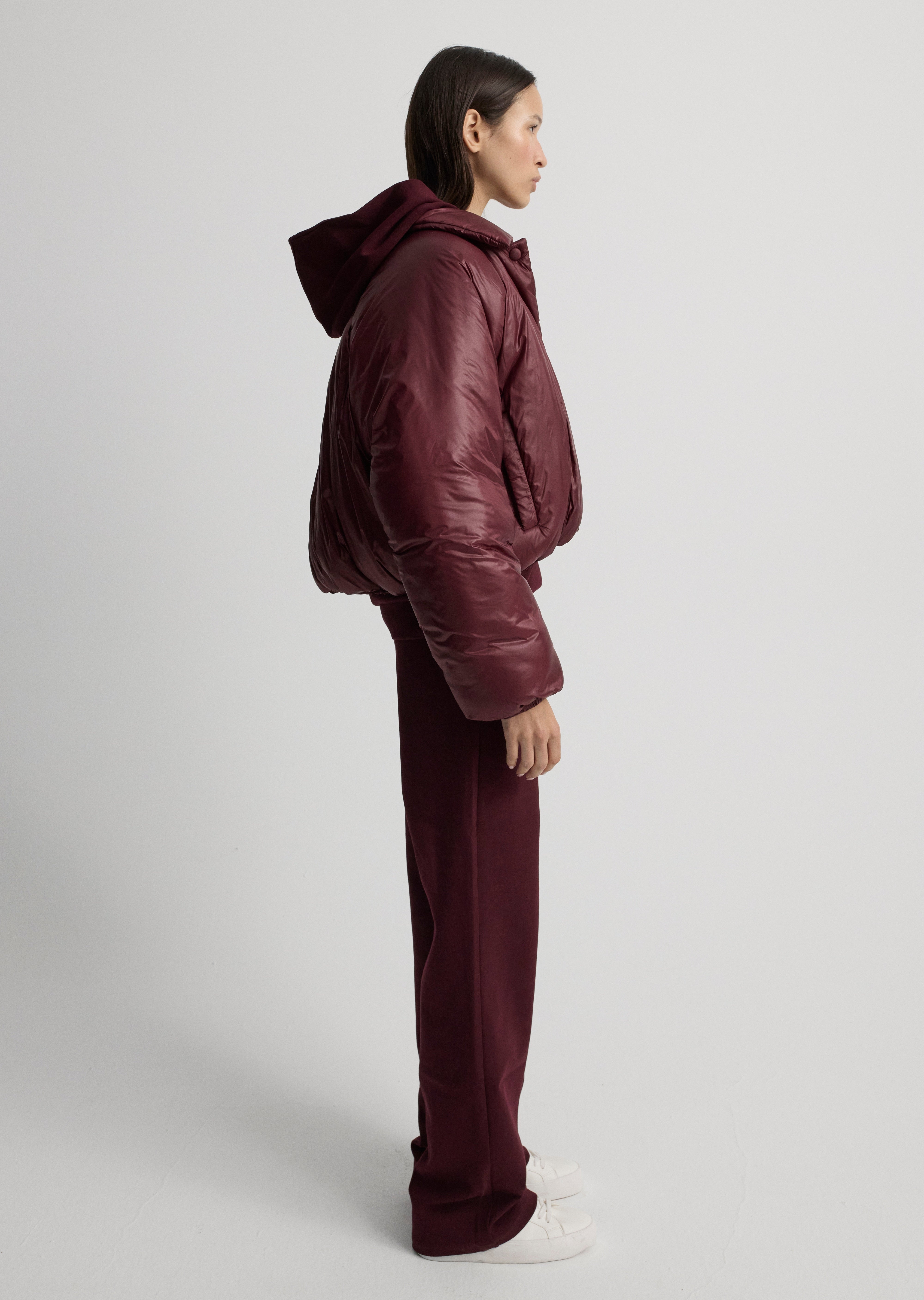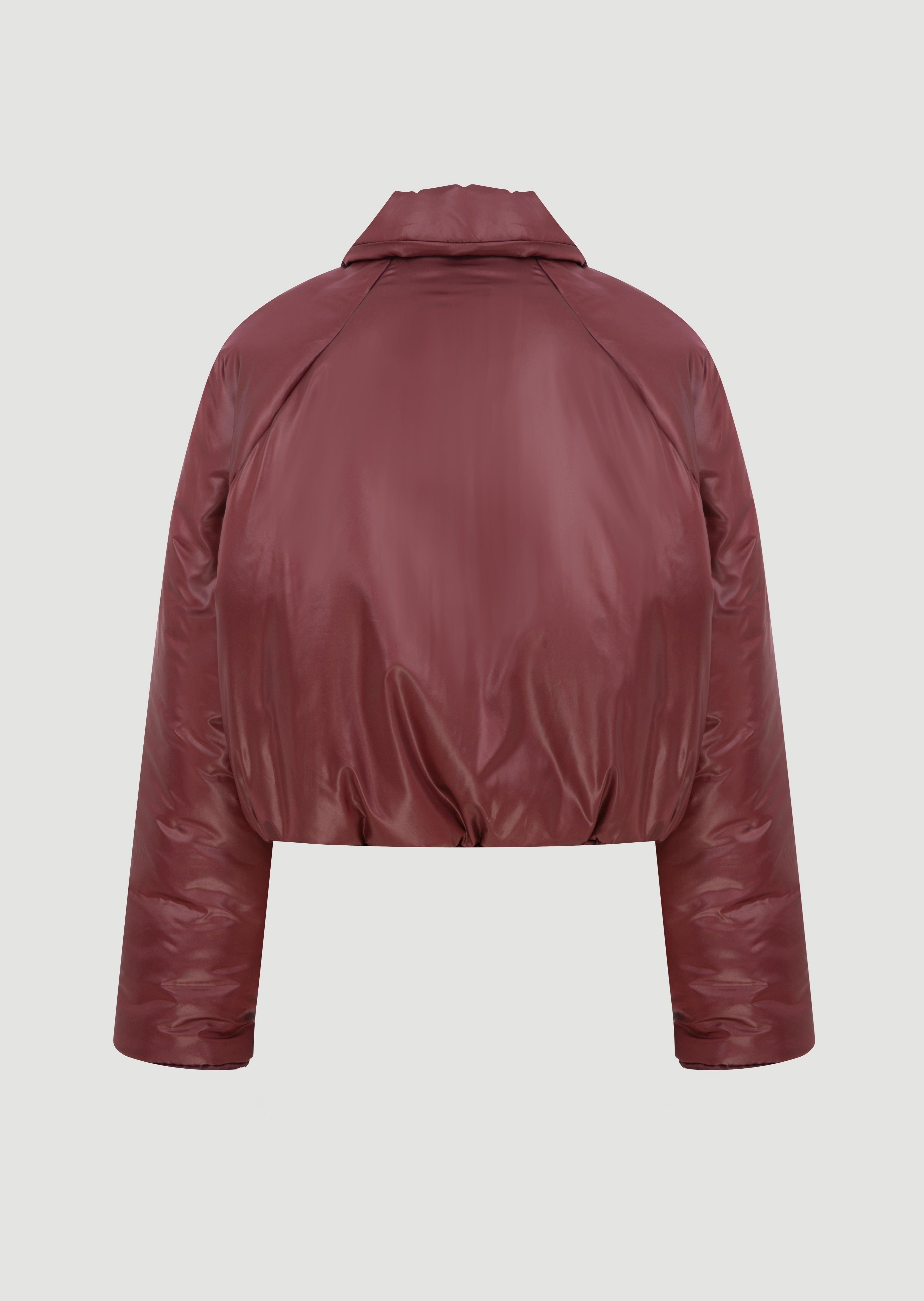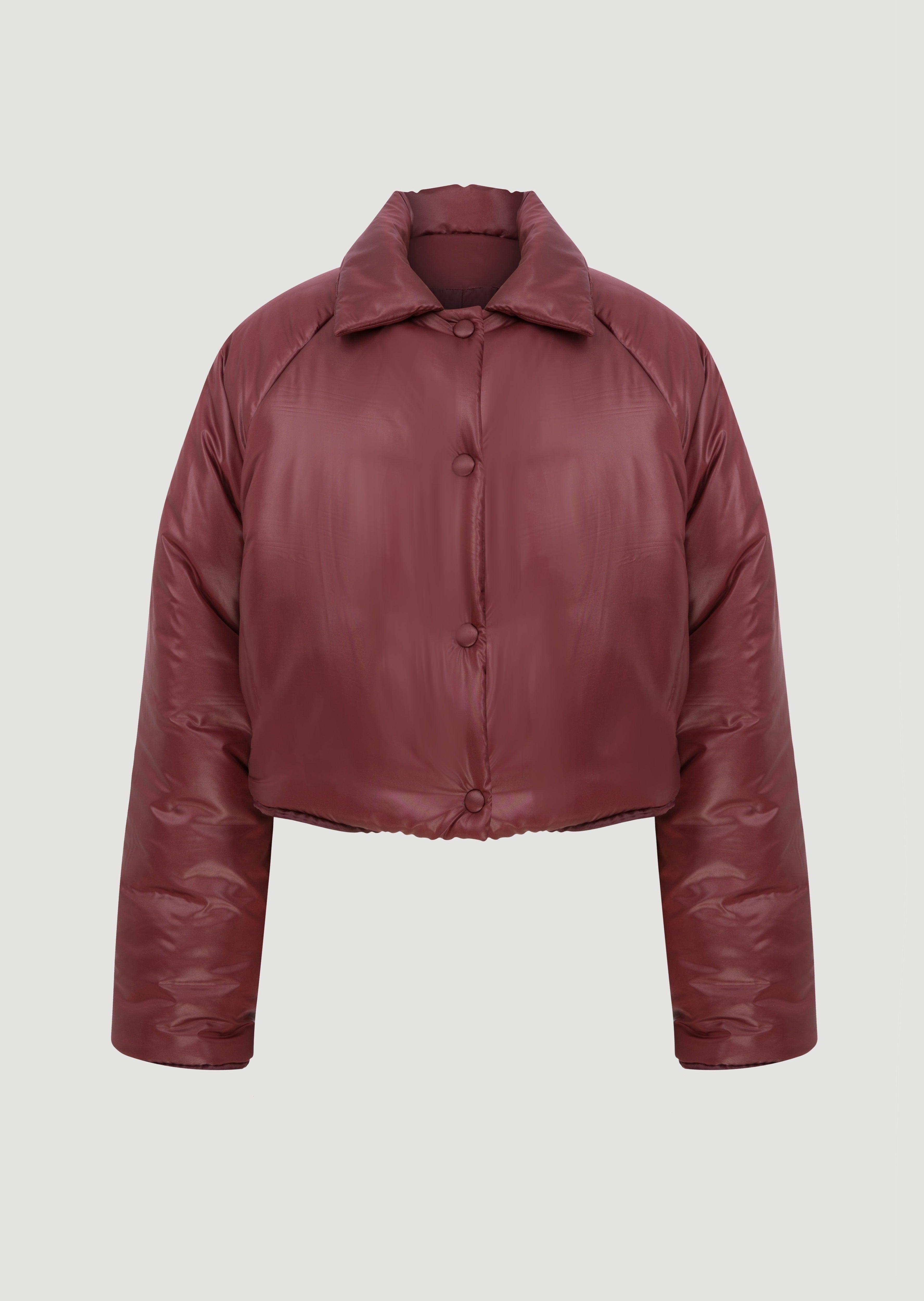 Puffer jacket with collar detail and buttons on the front.