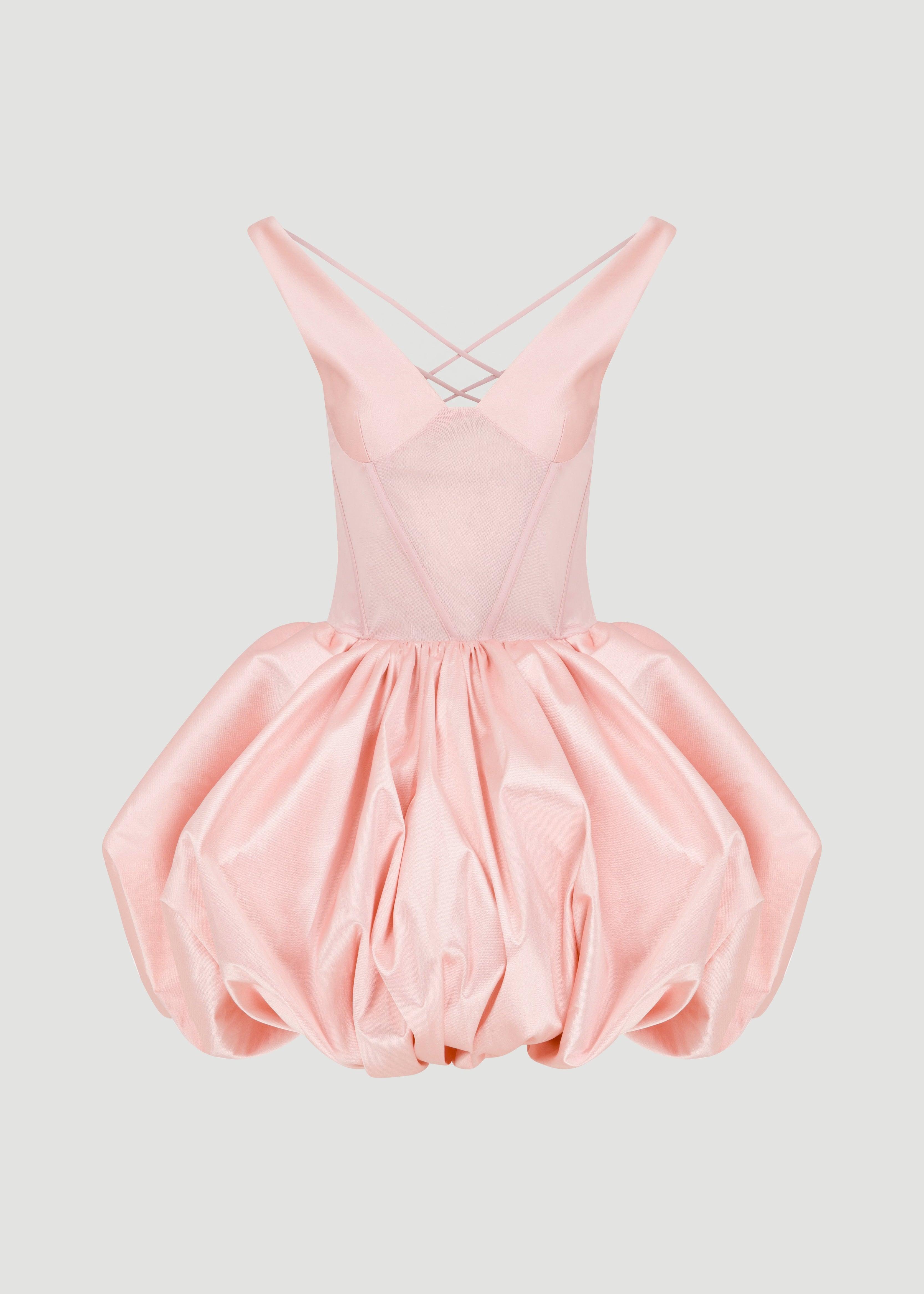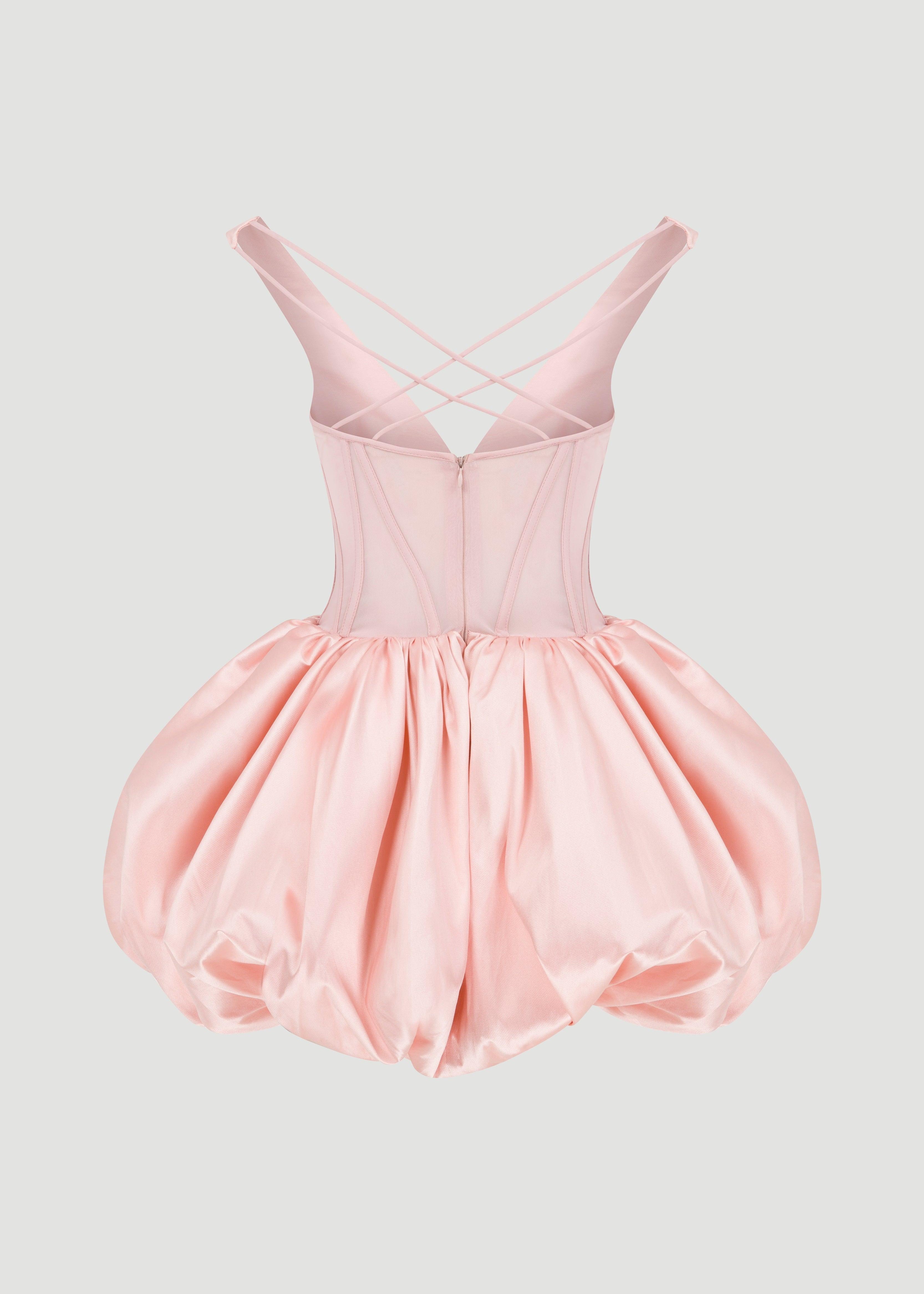 Balloon skirt dress with transparent waist and underwire detail.