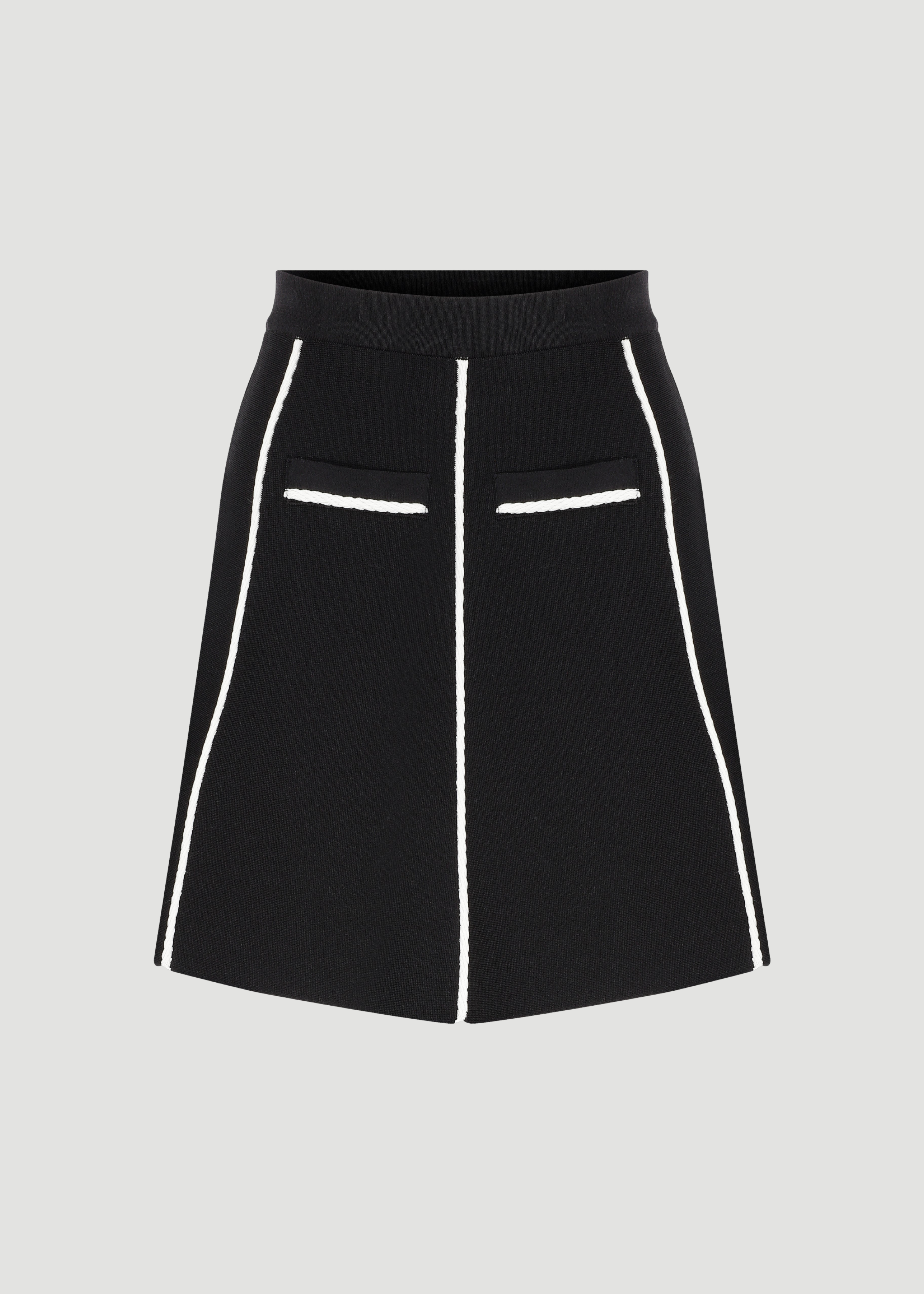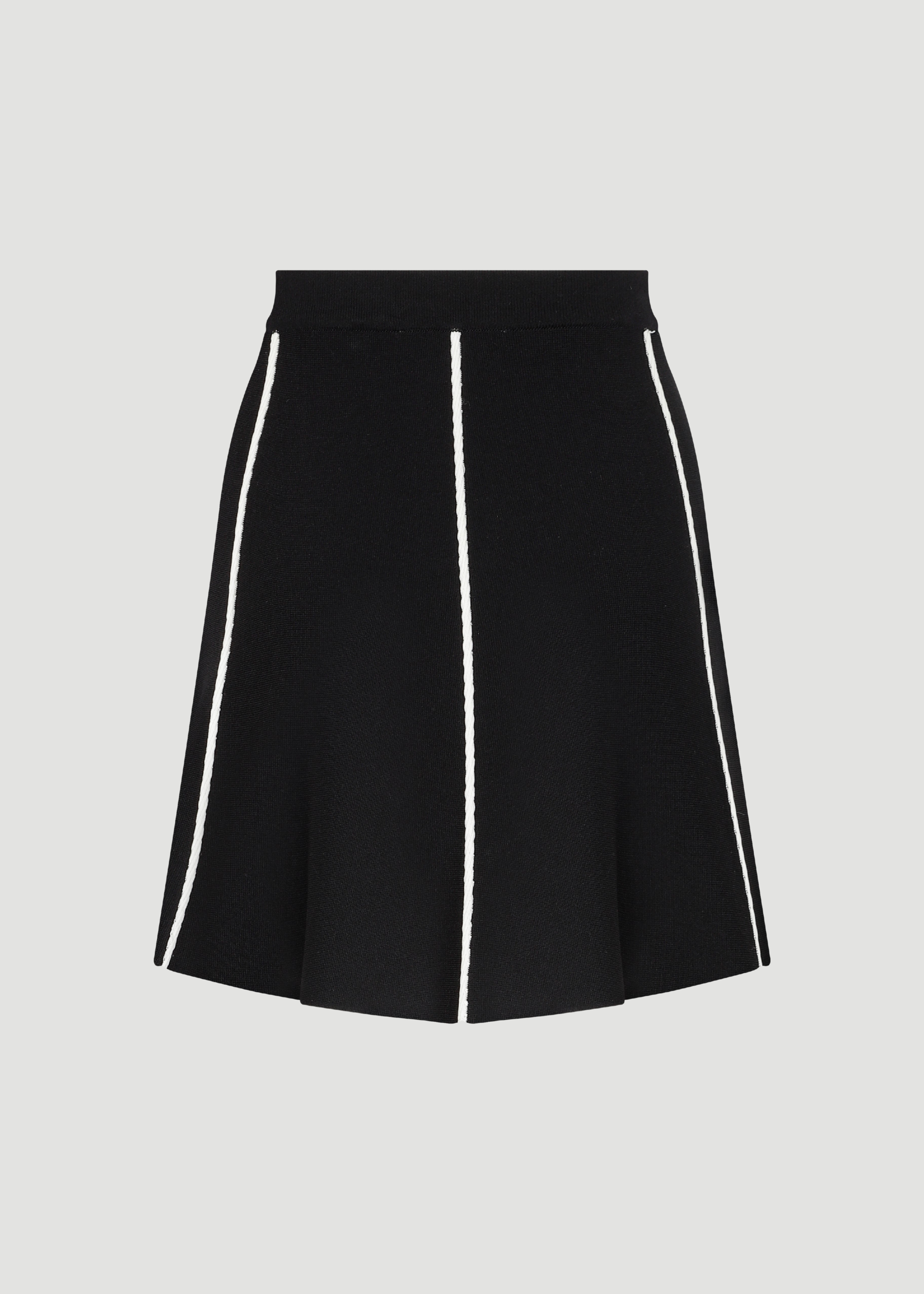 A-line cut, piping detail, trico fabric skirt.
