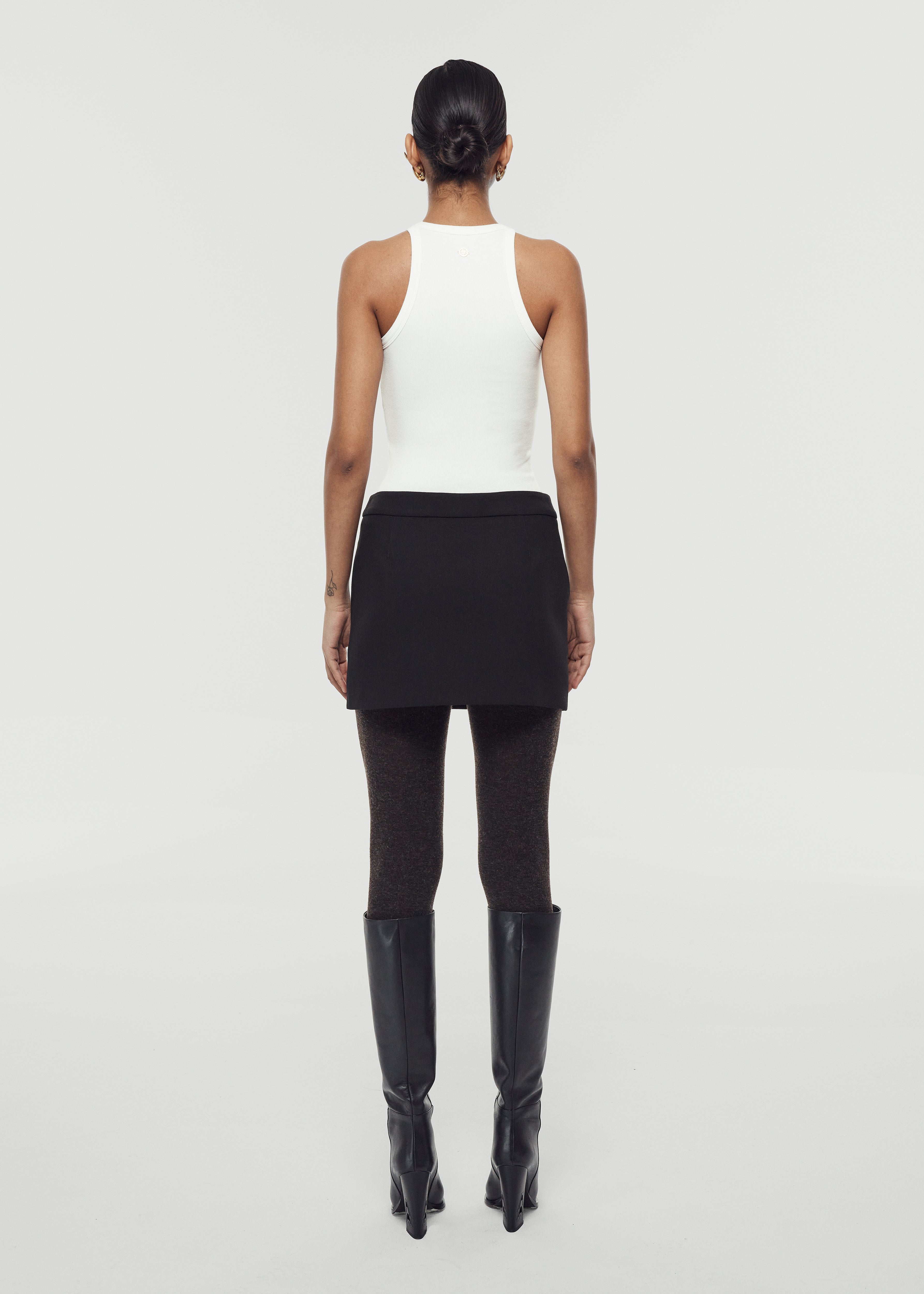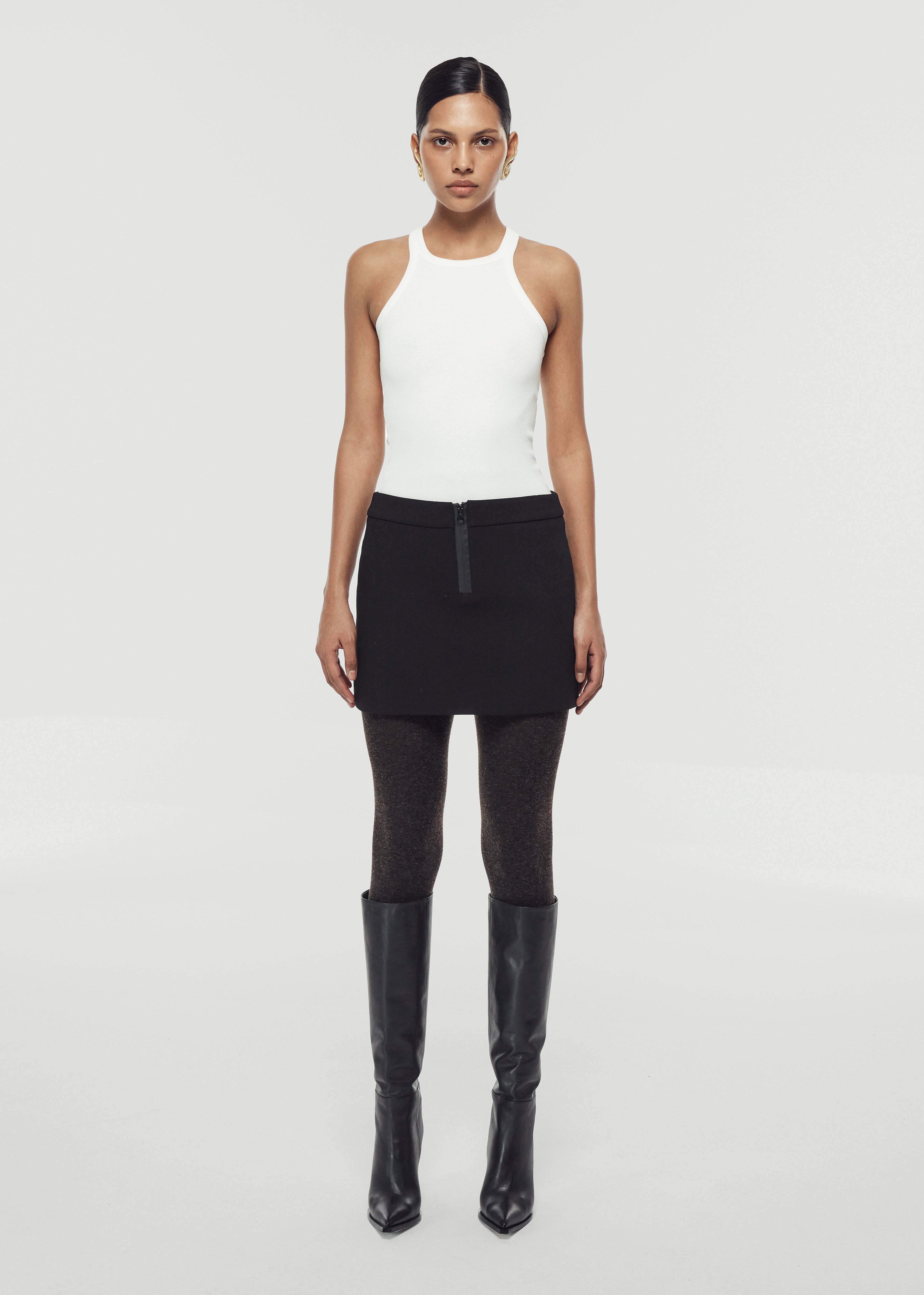 Skirt with special zipper detail, darts and mini cut.