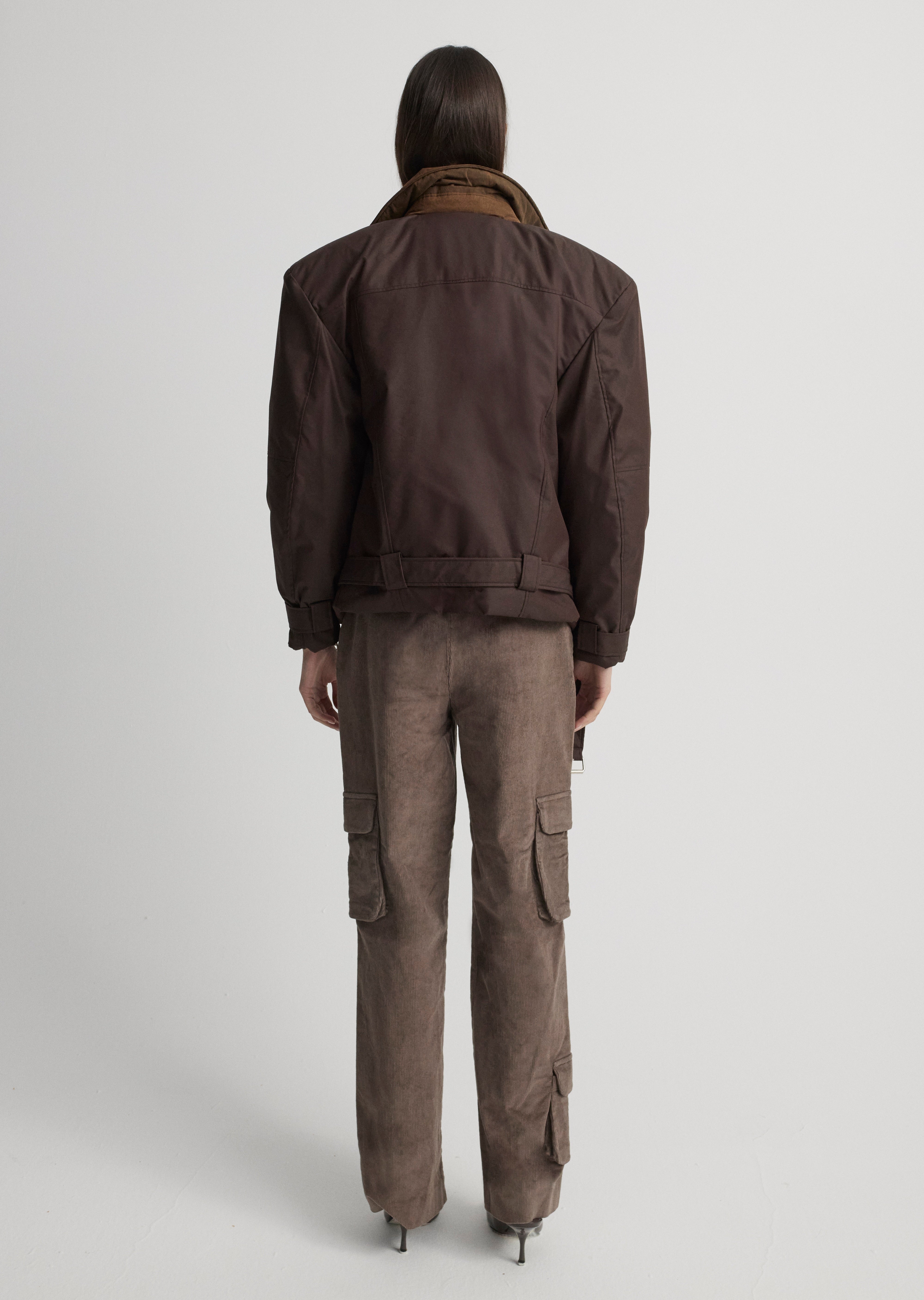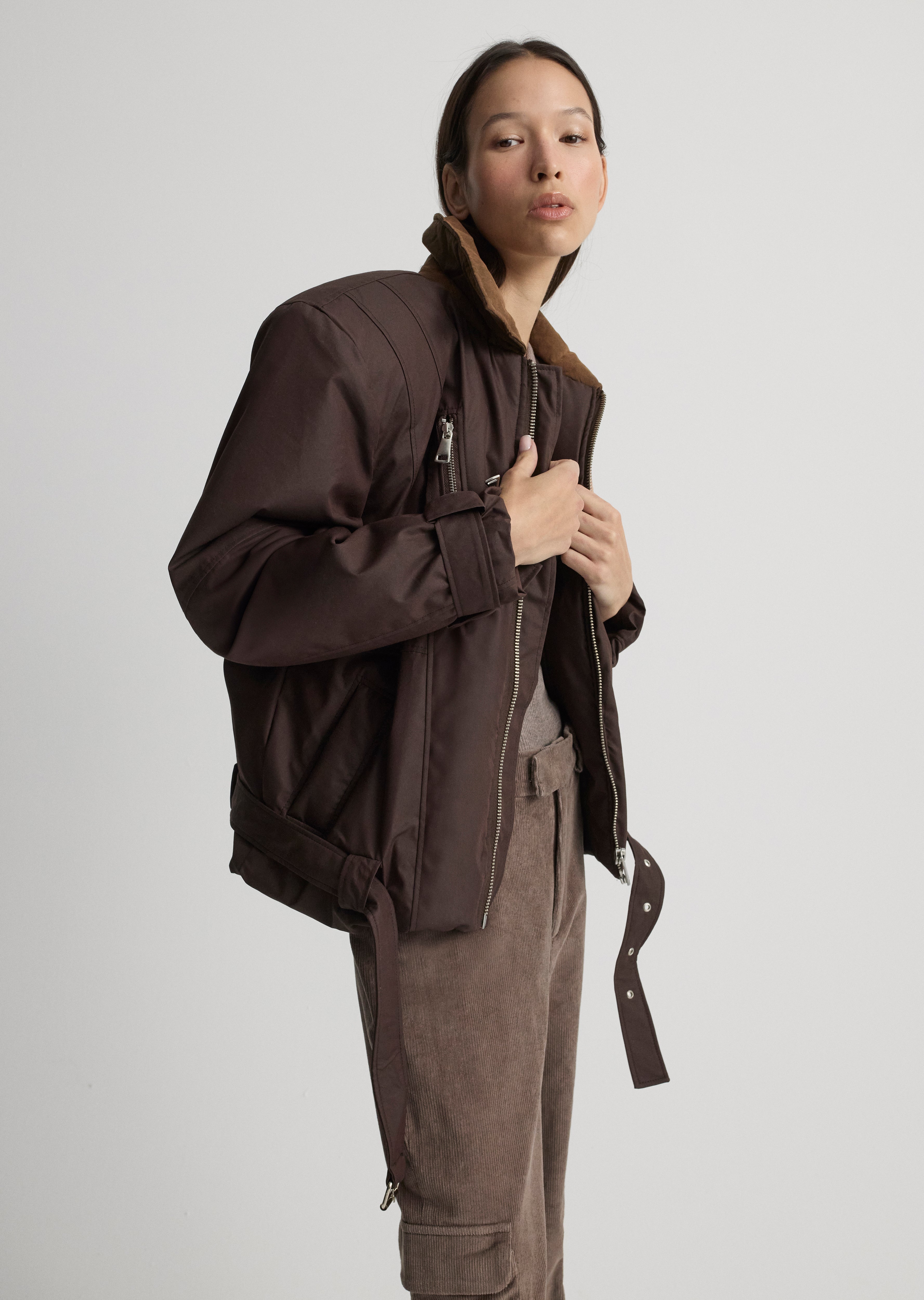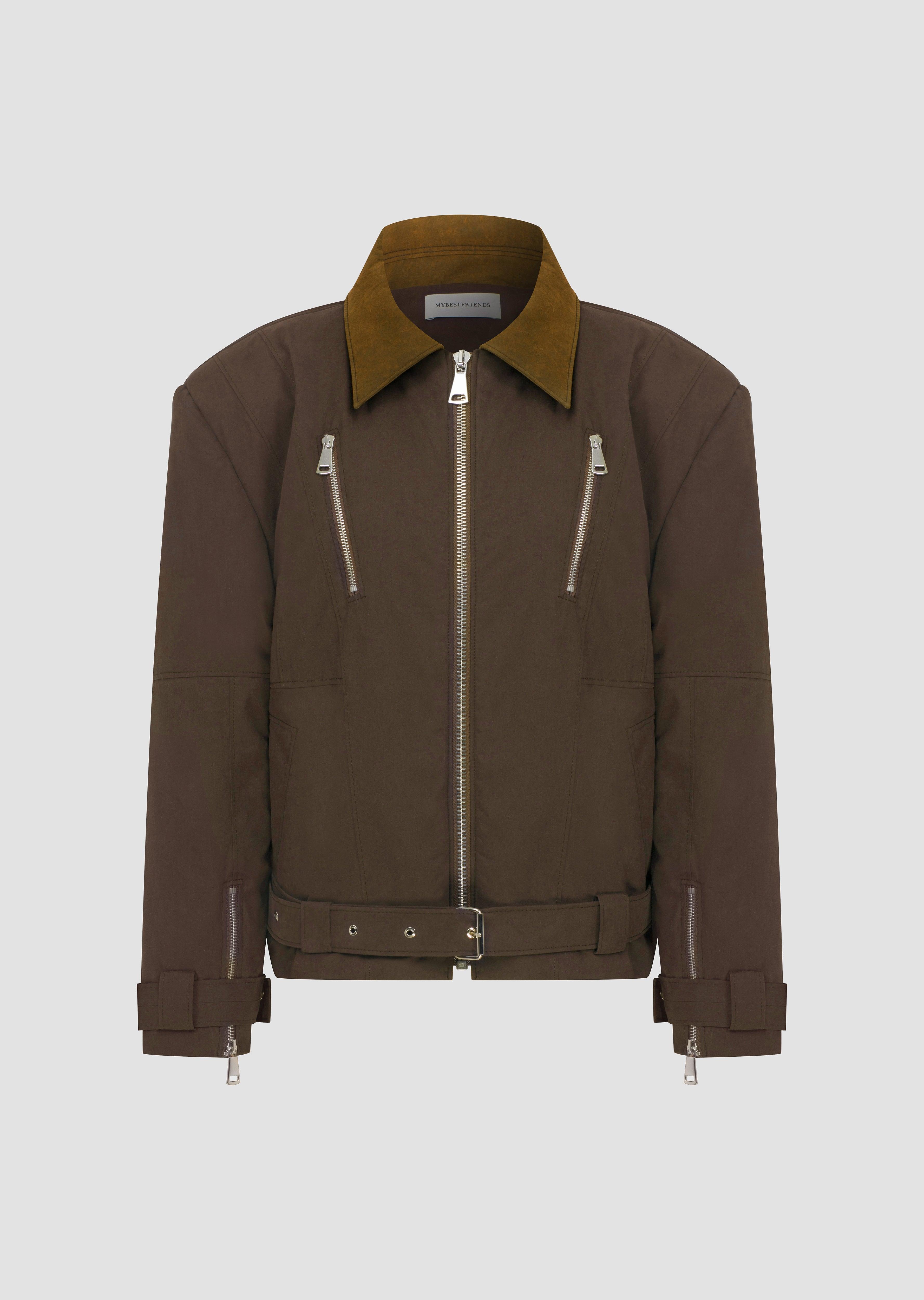 Oversize jacket with pads and zipper detail.