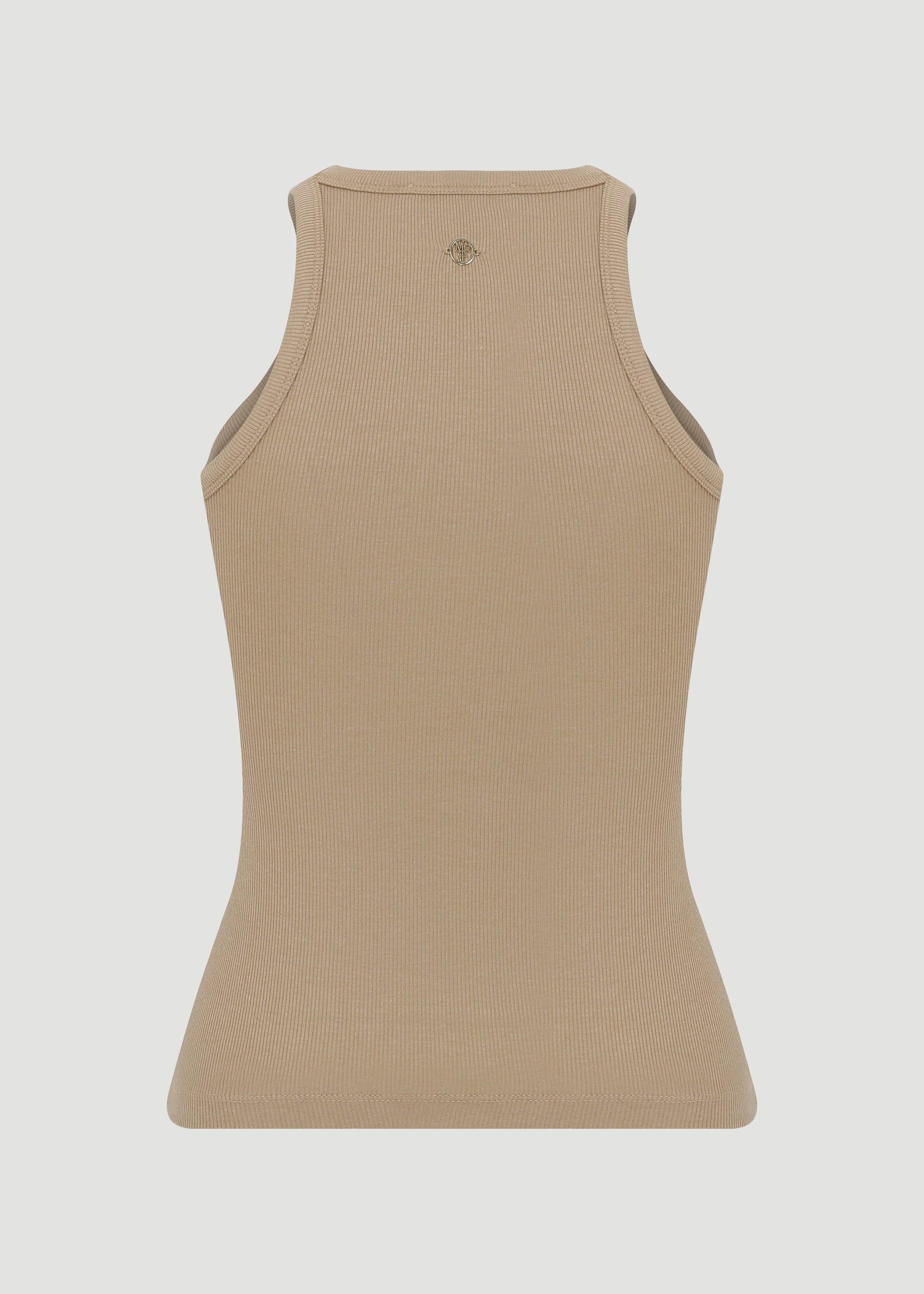 Stretchy bodysuit with halter neck design and a blend of modal and cotton fabric.