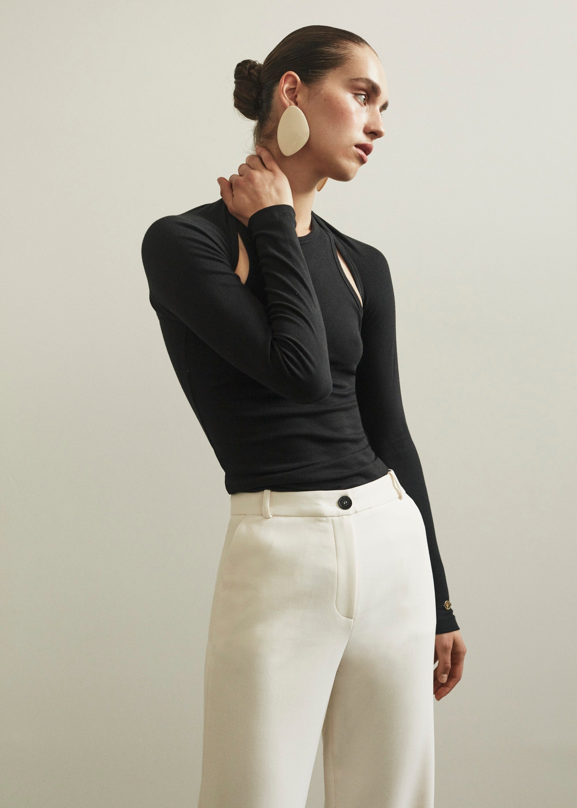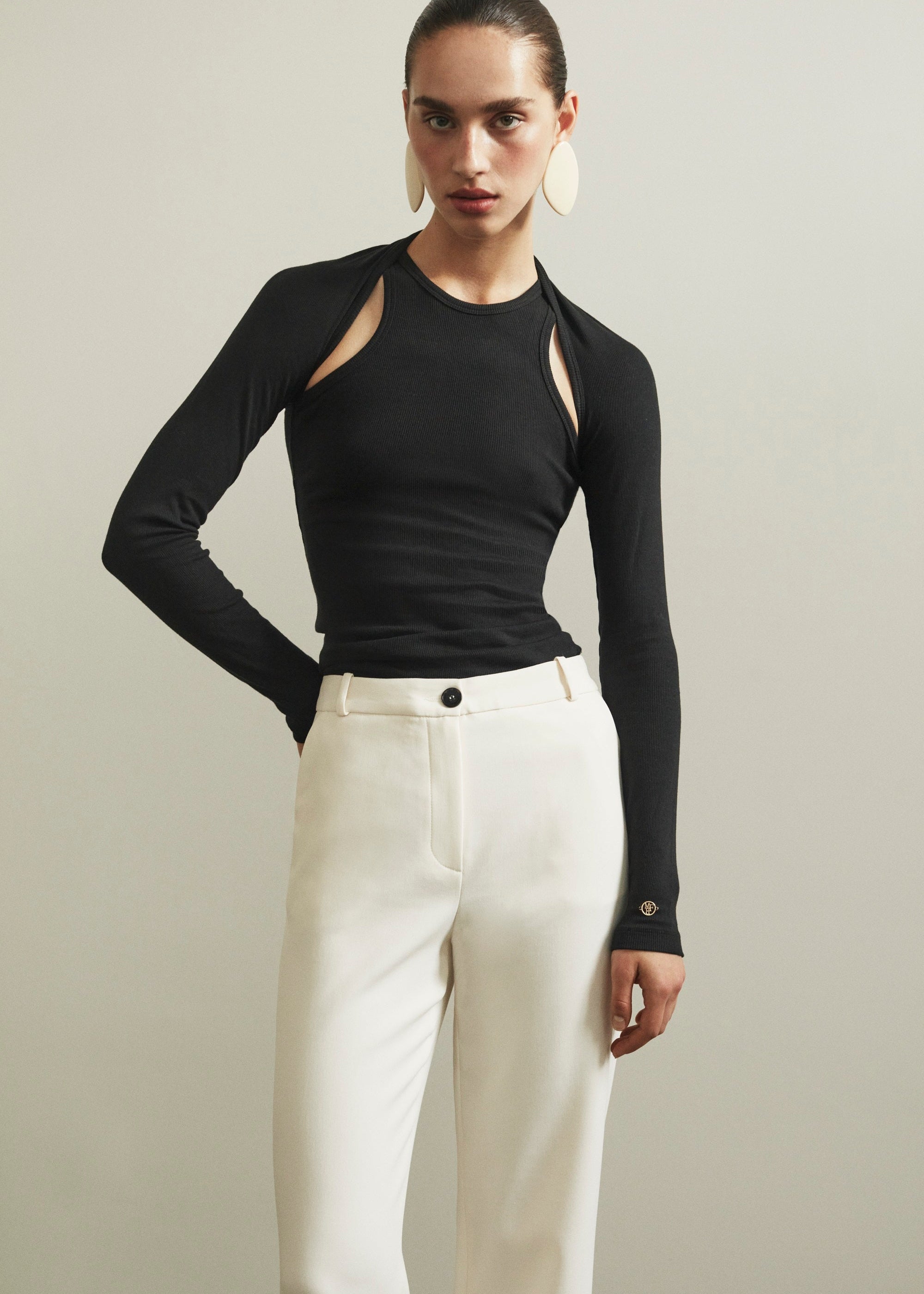 Flexible bodysuit with cut-out detail.