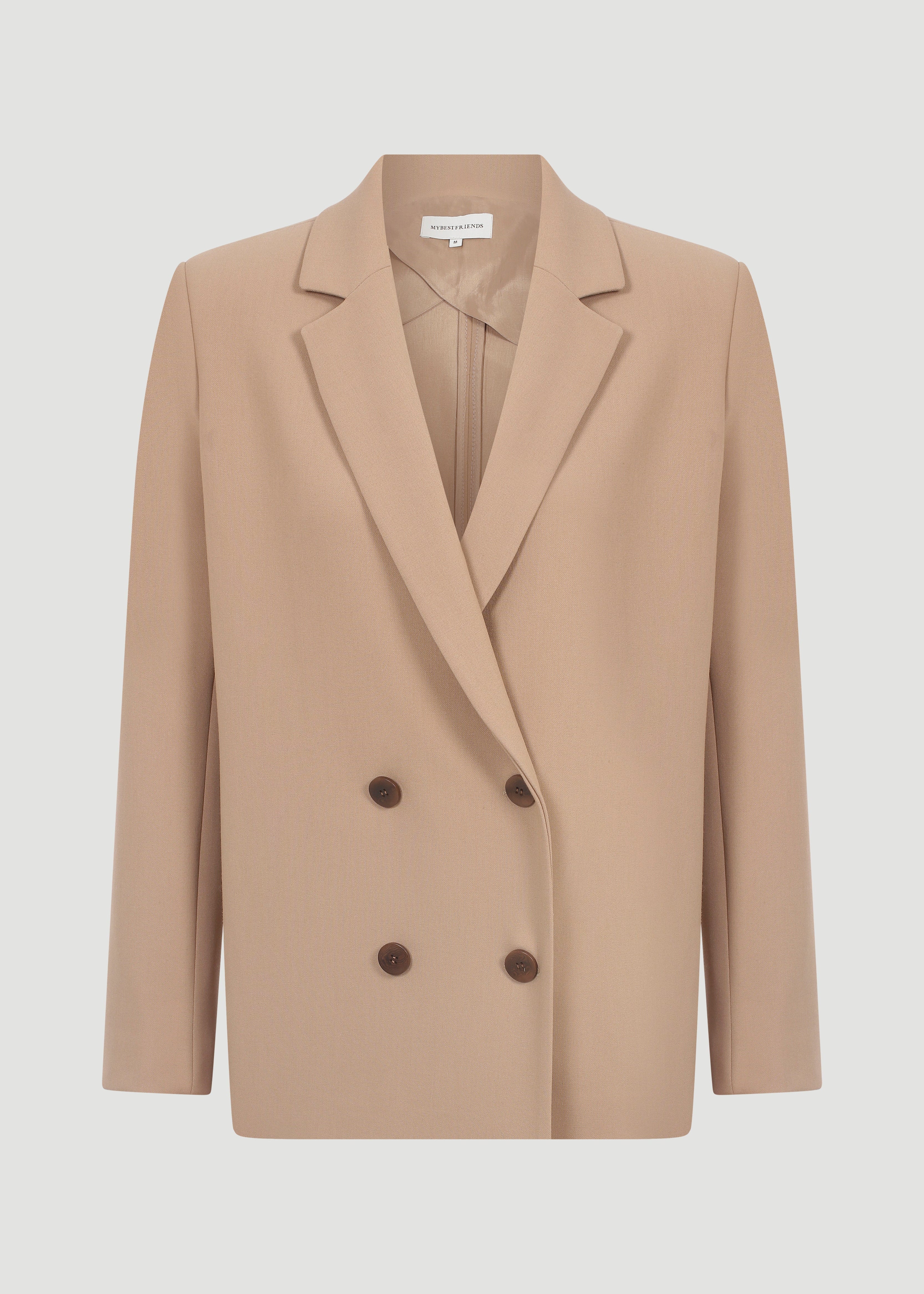 Straight-cut, button-detailed, double-breasted blazer jacket.