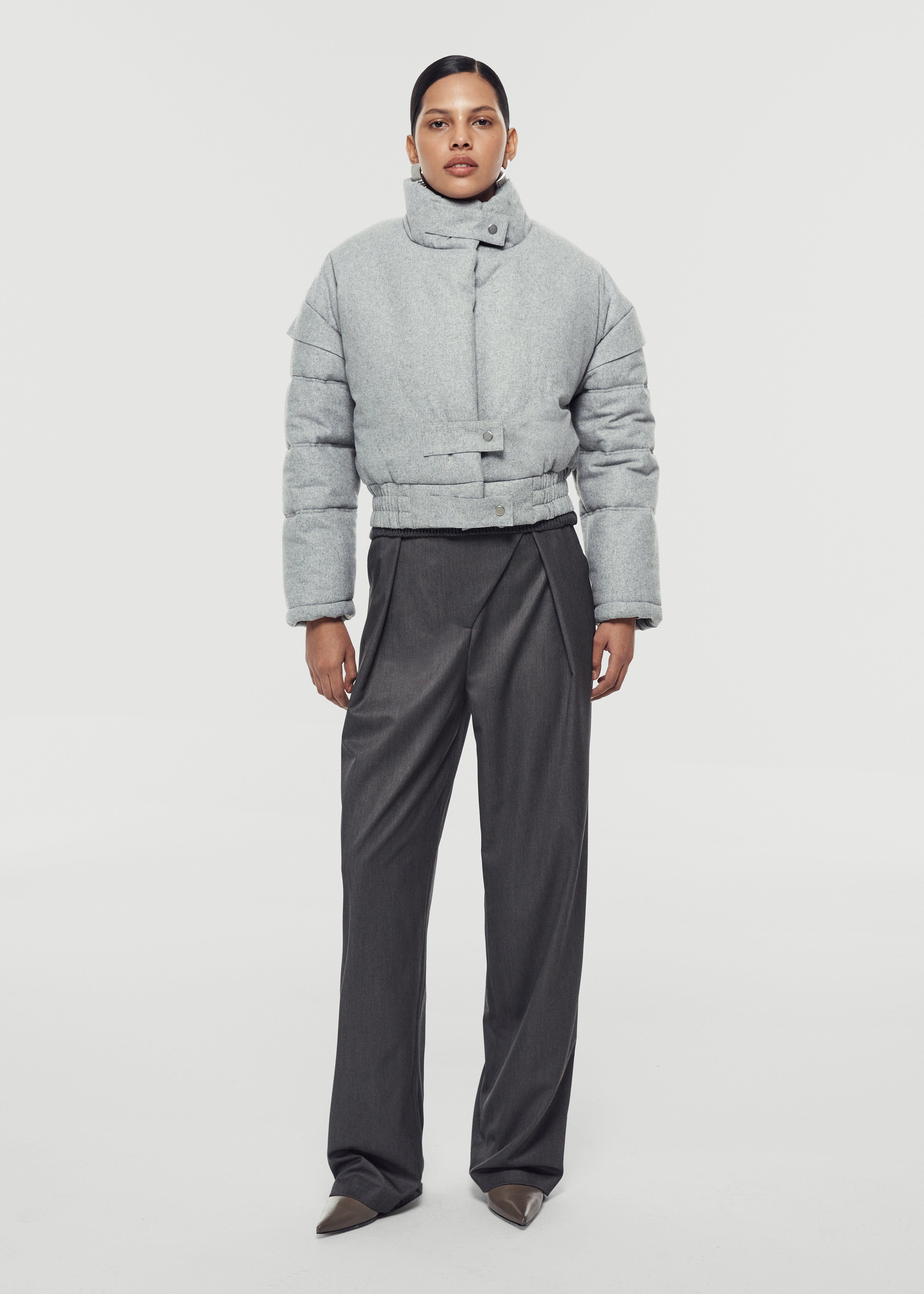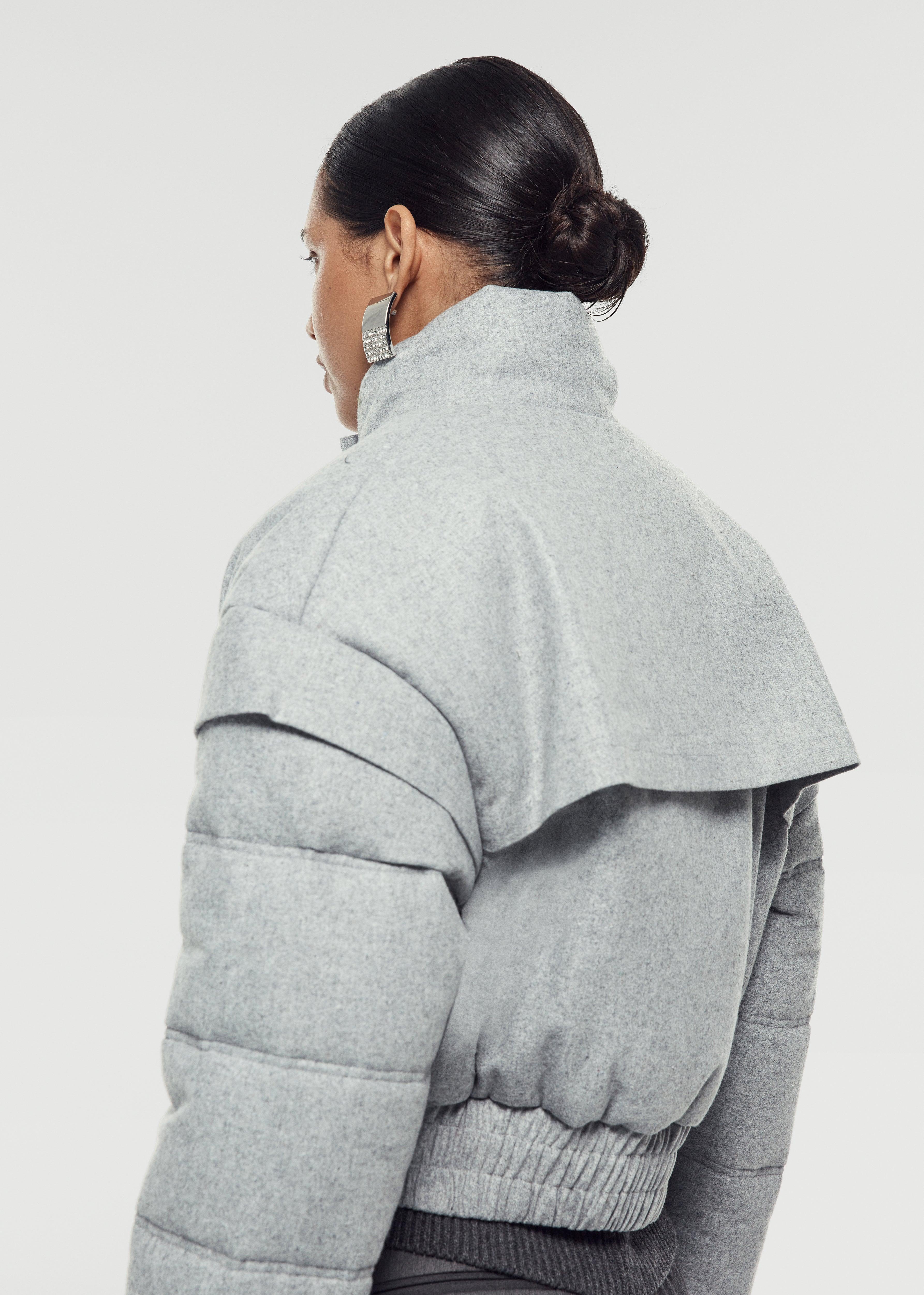 A short coat with a stand-up collar and placket detail, offering the comfort of fabric made from Aegean cotton, known as the softest cotton in the world.