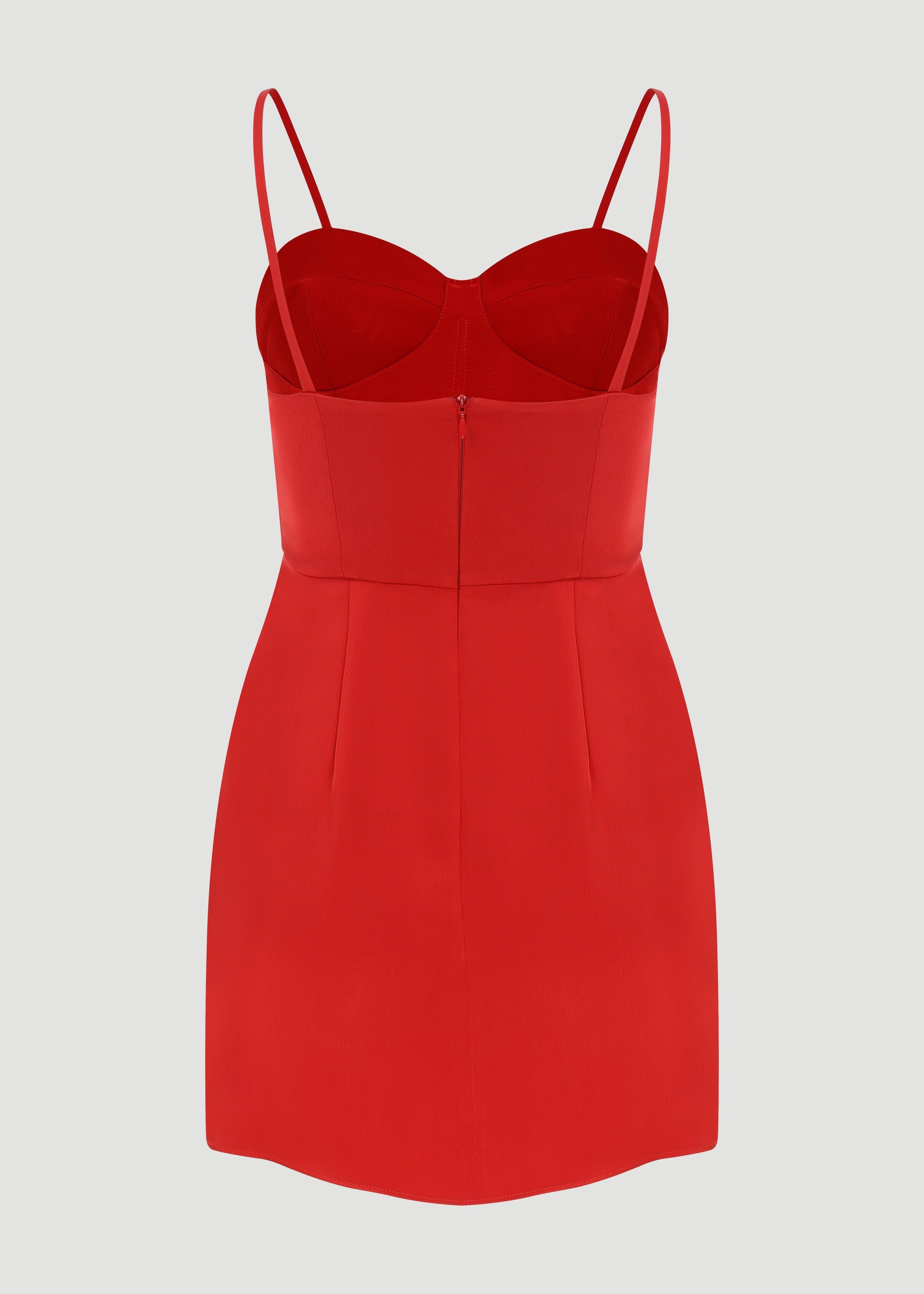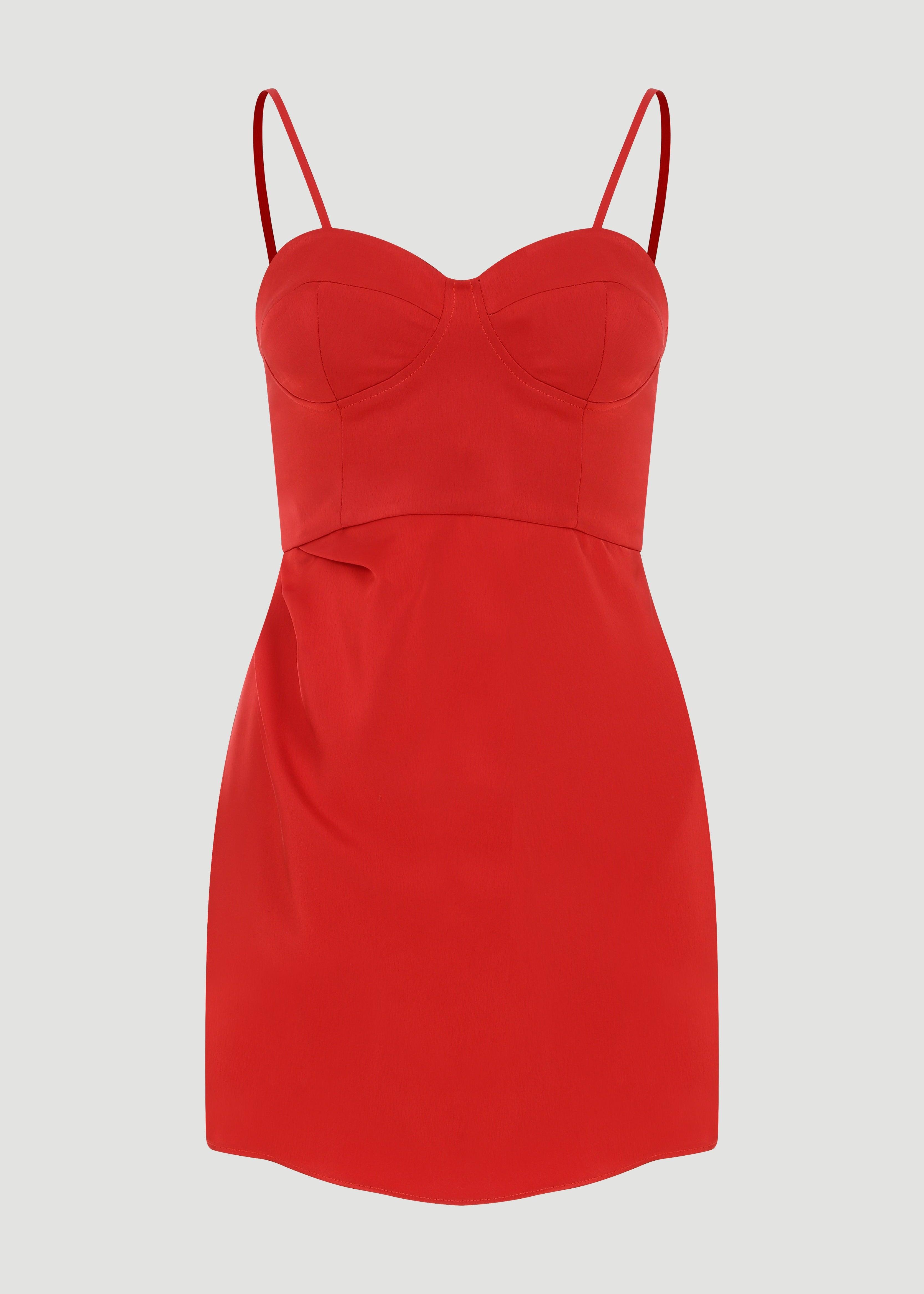 Satin mini dress with spaghetti straps. It is 82 cm from shoulder.