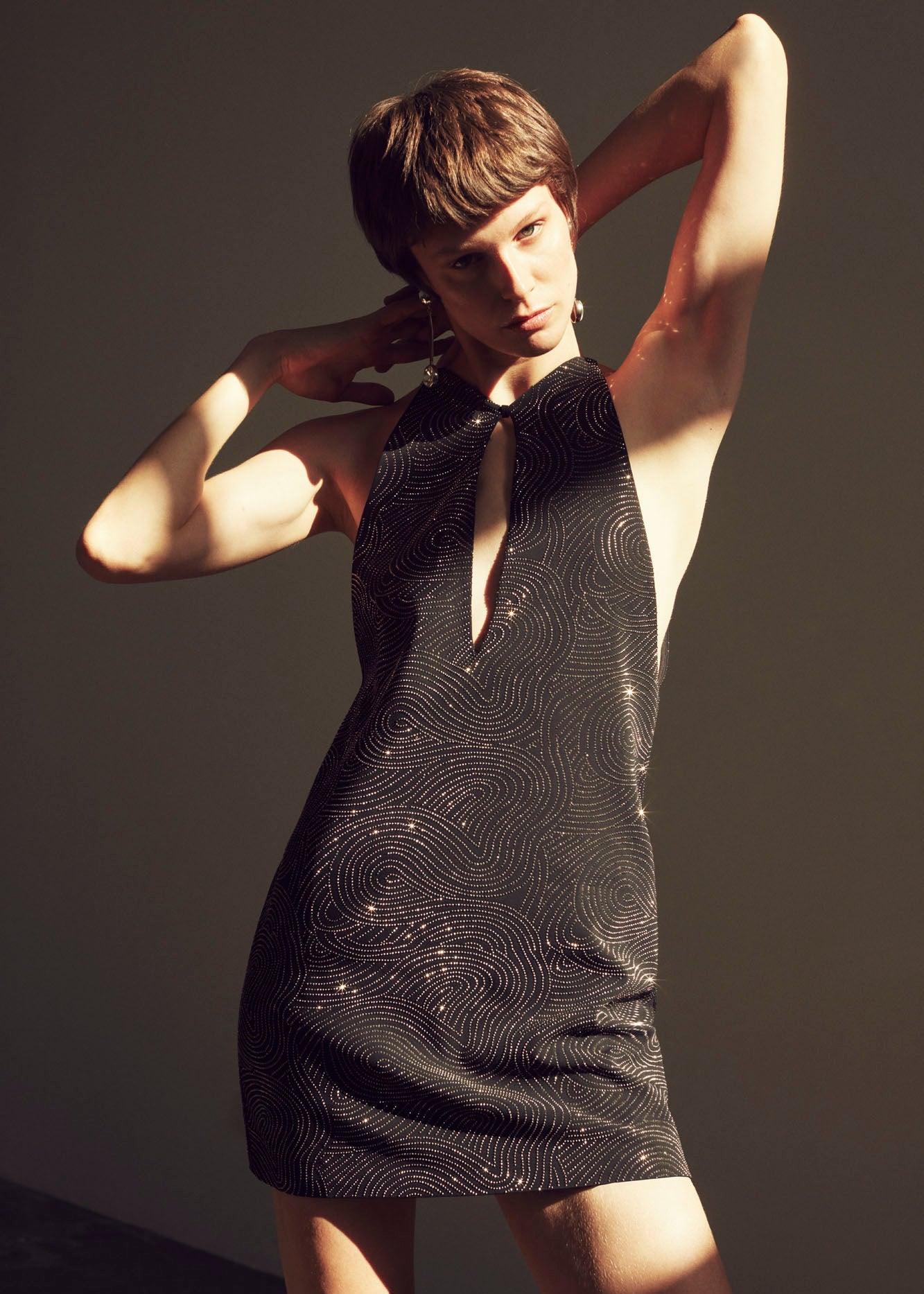 Mini dress with rhinestone print detail and chest window, pattern specially designed by MBF.