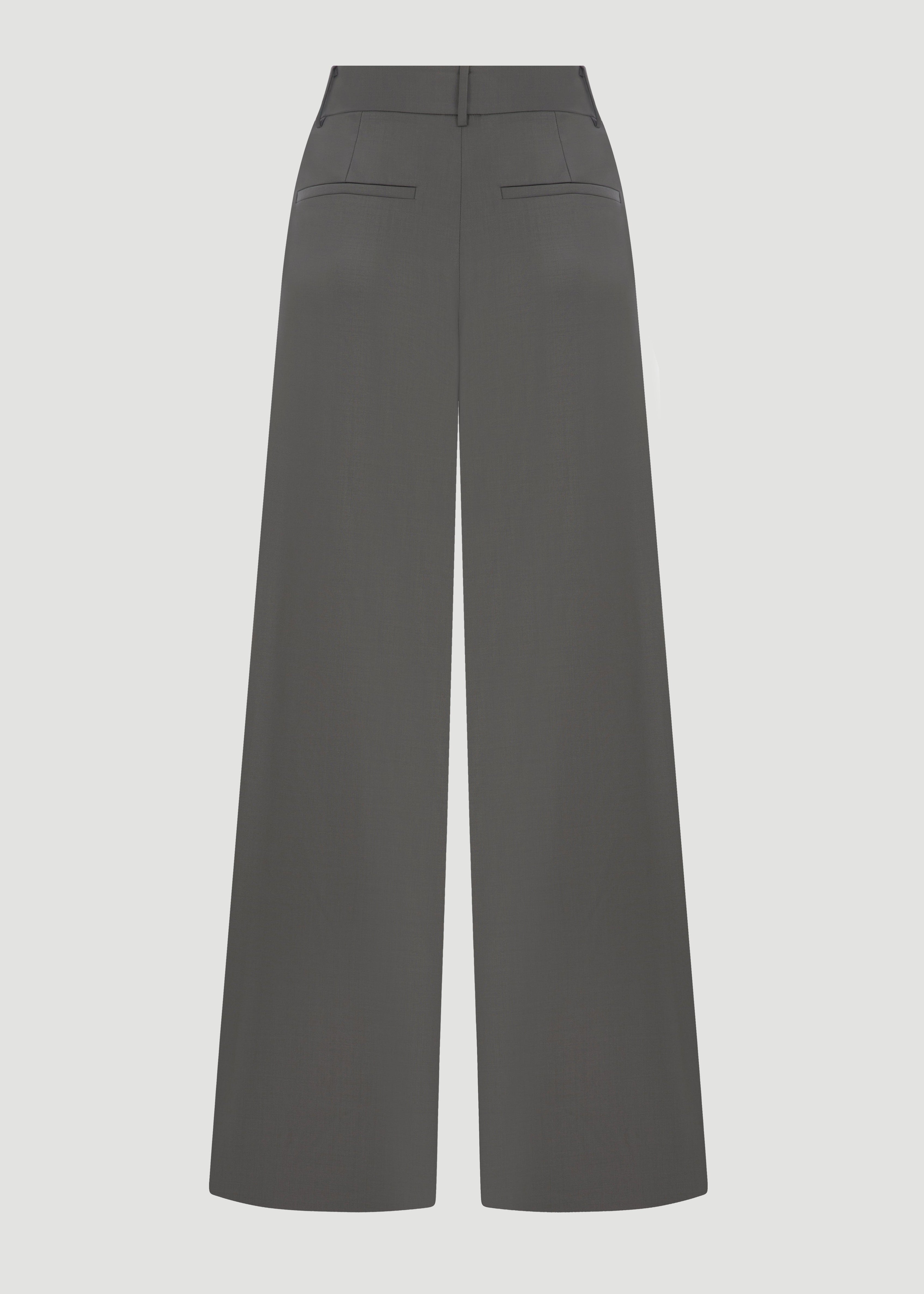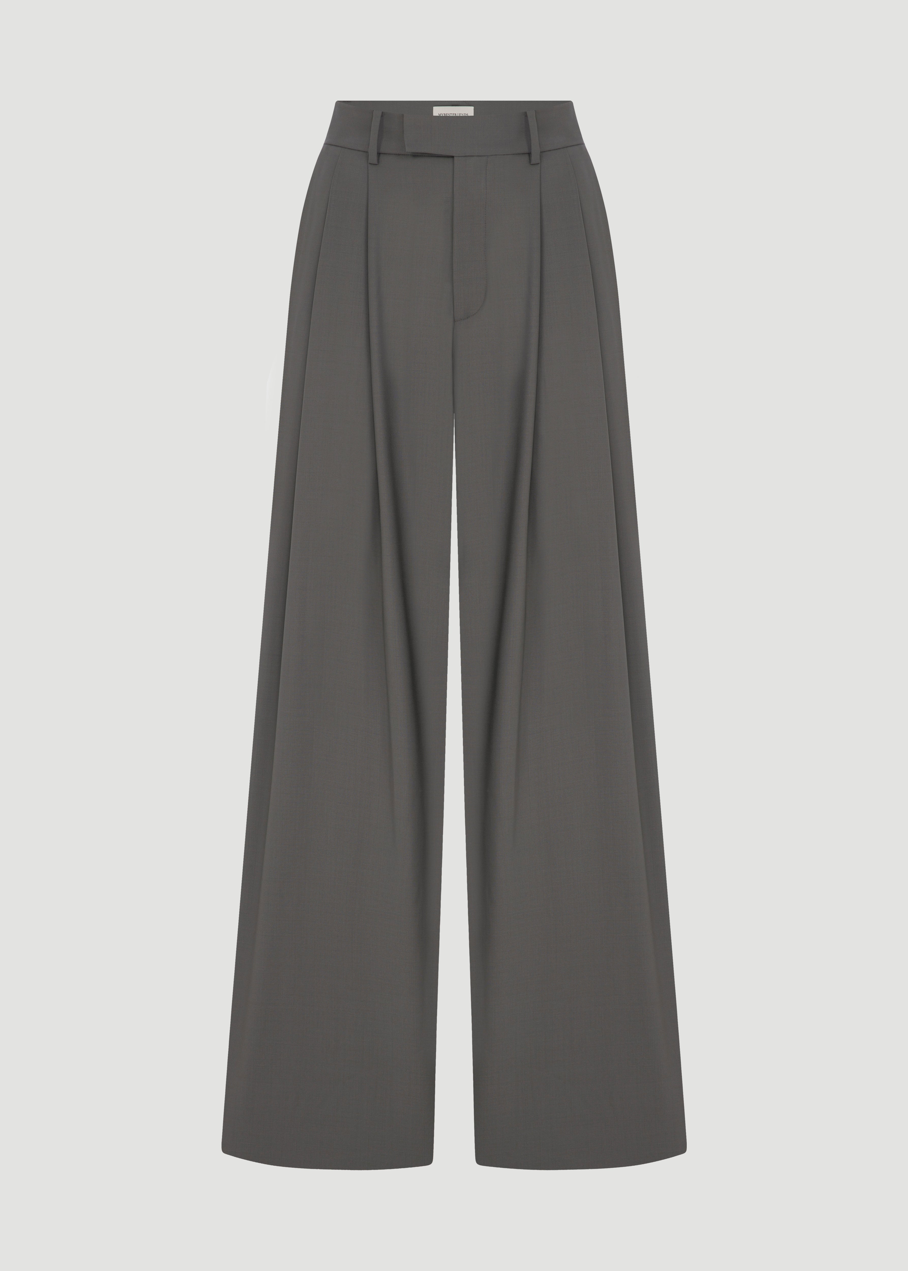 High-waisted, pleated detail, wide-leg trousers.