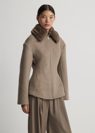 Oversize jacket with pads and zipper detail.